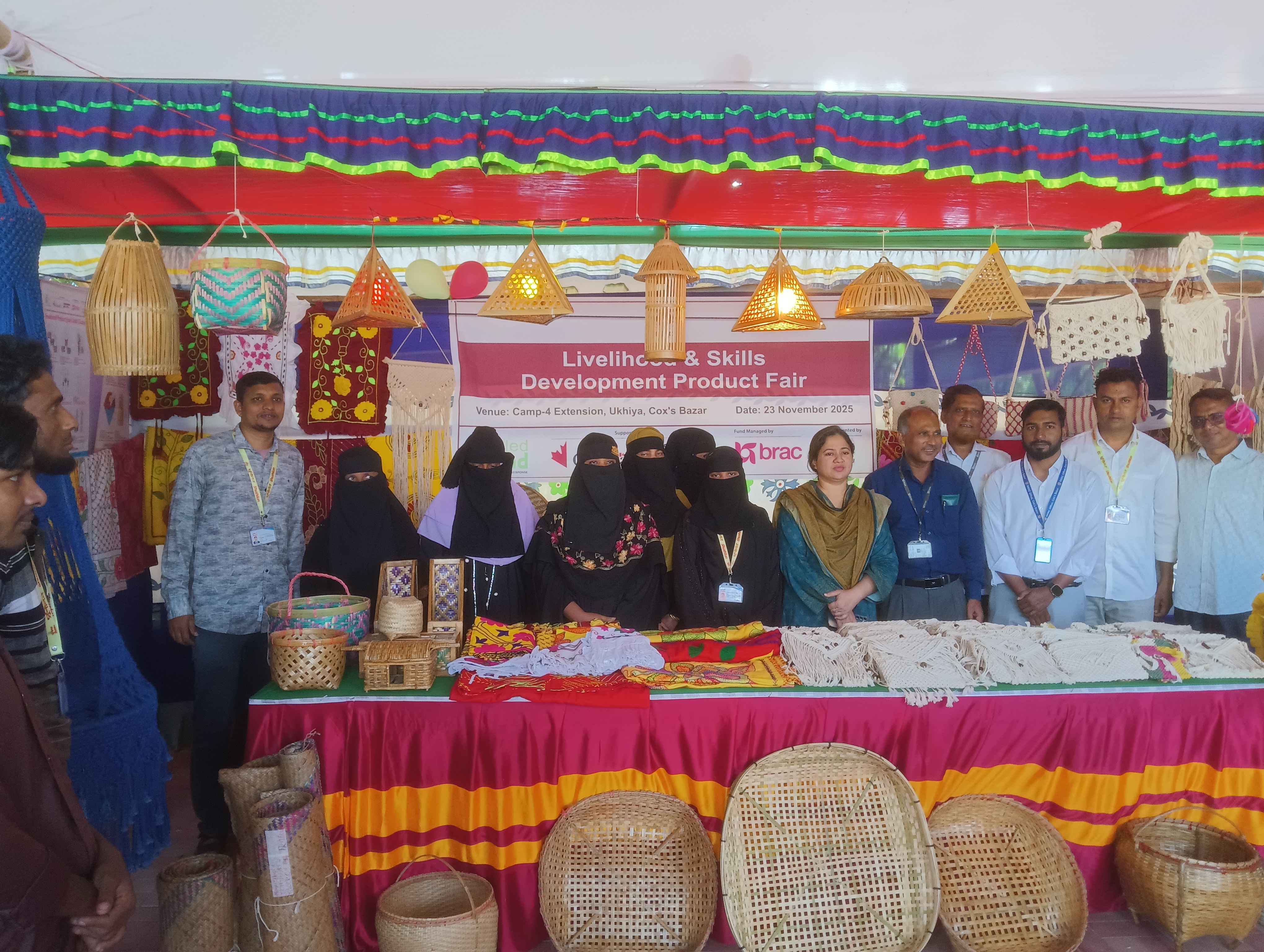 Shushilan have been implementing the project with the support of the Pooled Fund managed by BRAC and funded by Global Affairs Canada (GAC) and Department of Foreign Affairs and Trade (DFAT). Under this project Shushilan provided 24 days (120 hours) long handicraft training in 2024 and in 2025 also provided 10 days long refresher training on 4 trades (Jute Craft, Bamboo & Cane, Nakshi kantha and Shital Pati) to 160 participants of Camp 4 Extension and 440 participants of Camp 2 East and provided input support to them. The participants have developed skills and with the input support they are now making handicraft products in their households. Shushilan has also facilitated linkages between beneficiaries and both suppliers and buyers. As a result, the beneficiaries are now regularly producing products and earning a steady income.